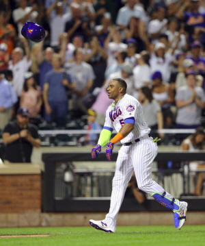 Jose Reyes scored the Mets' first run on a wild pitch in the eighth