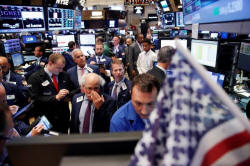 Traders work on the floor of the New York Stock Exchange (NYSE)