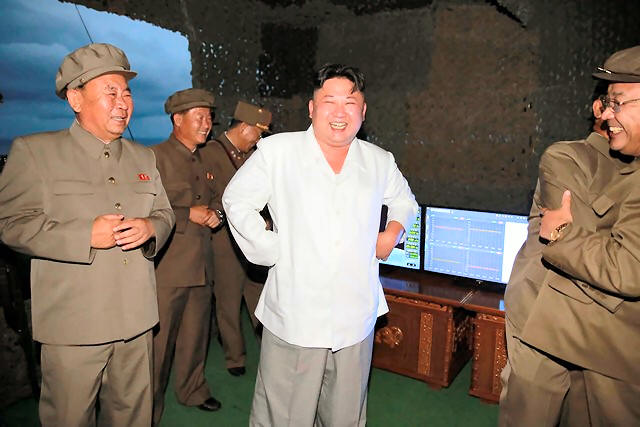 North Korean leader Kim Jong Un is pictured during a test-fire of