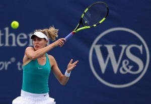 Eugenie Bouchard (CAN) returns a shot against Barbora Strycova (CZE)