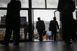 People enter the Nassau County Mega Job Fair at Nassau Veterans