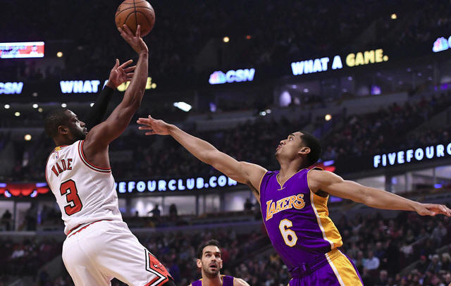 Bulls guard Dwyane Wade (3) shoots the ball against Los Angeles