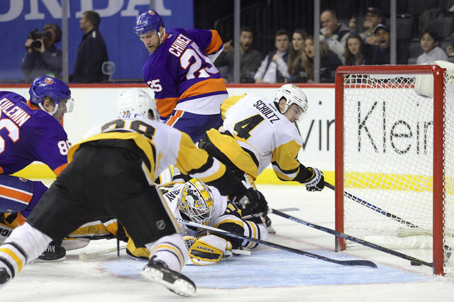 The Islanders led 3-0 after two periods before the Penguins tied the