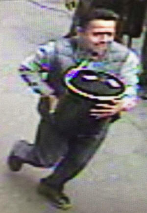 An unidentified man is shown in this still image from surveillance video carrying a 86-pound pail of gold flakes valued at $1.6 million off an armored truck two months ago in Manhattan provided by the New York Police Department in New York, November 30, 2016. Courtesy of NYPD/Handout via REUTERS |