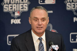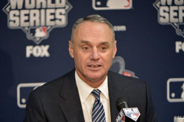 MLB commissioner Robert D. Manfred, Jr. answers questions from media