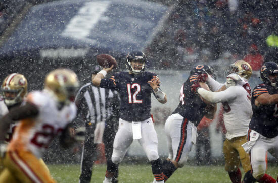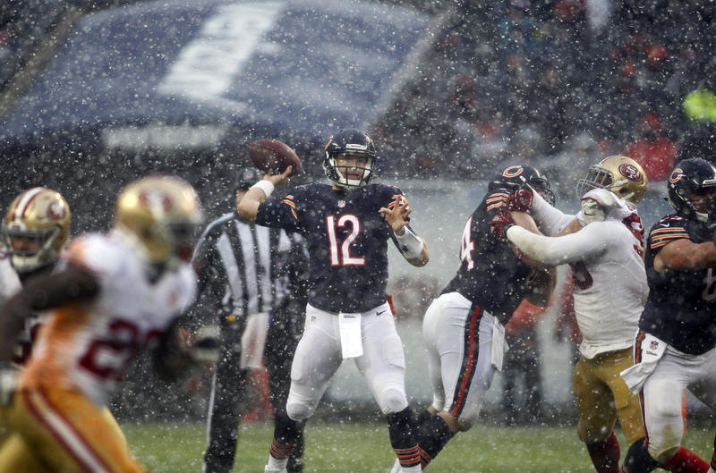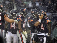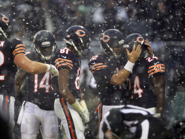 Jordan Howard (24) celebrates with Chicago Bears quarterback