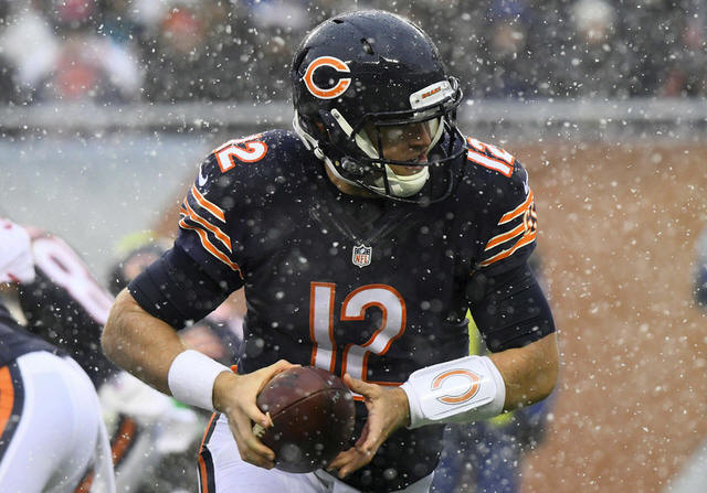 Bears quarterback Matt Barkley (12) drops back to pass against the
