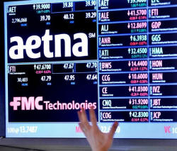 2.2 percent at $208.83 while Aetna was down 3 percent at $129.45.