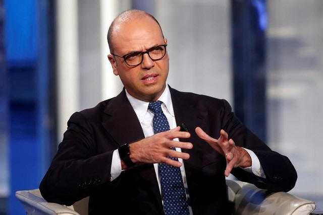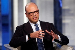 Italy's Minister of the Interior Angelino Alfano gestures as he