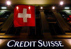 The logo of Swiss bank Credit Suisse is seen below the Swiss