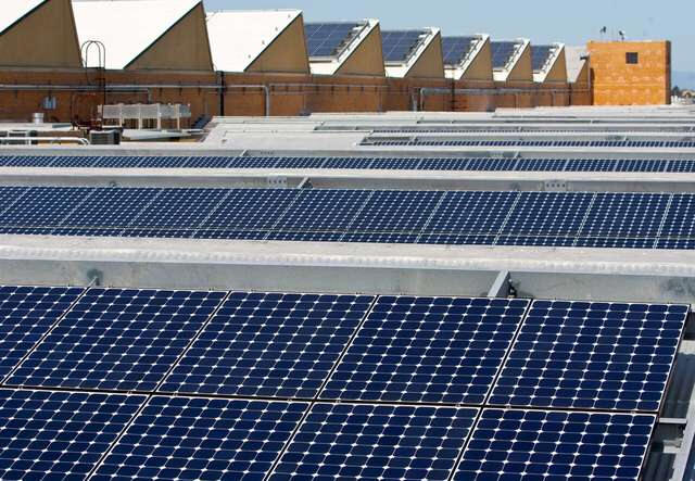 Solar panels sit on the roof of SunPower Corporation in Richmond, California in this March 18, 2010 file photo. REUTERS/Kim White/File Photo |
