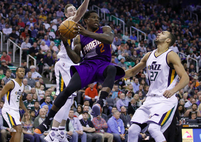 Suns guard Eric Bledsoe (2) looks to pass against Utah Jazz forward
