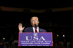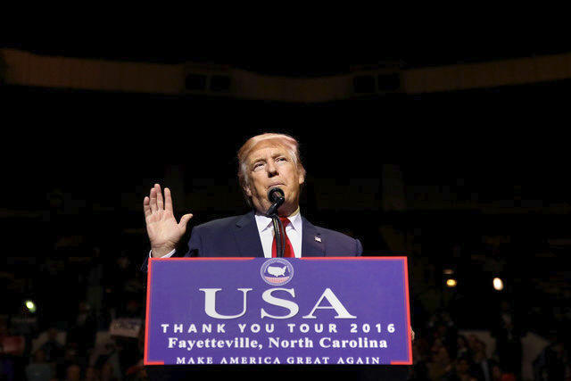 President-elect Donald Trump speaks at a USA Thank You Tour event at