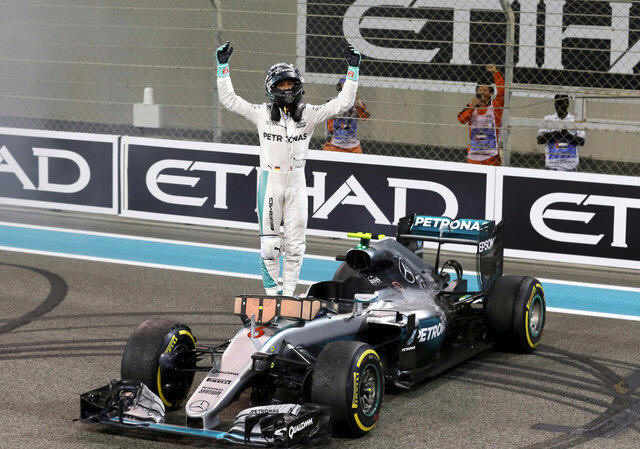 Mercedes' Formula One driver Nico Rosberg of Germany celebrates