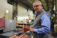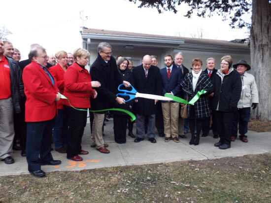 Lincoln College President Dr. David Gerlach snips the ribbon at the front door of the college's new television studio. LCTV has been up and running for a while, but with the opening of the new building, the station will expand its programming while offering broadcasting and television production degrees to its students. Earlier in the day, an array of guest speakers talked about the LC student education programs that will come from the new state of the art studio and the four-year degrees that will result. Included in the crowd at the ribbon cut, in the front row immediately to the right of Gerlach are John Malone, Associate Professor of Radio, TV, and New Media and General Manager of WLNX and LCTV; and Andre Walker, LCTV Student Operations Manager. LDN will have additional coverage of this event on Saturday.