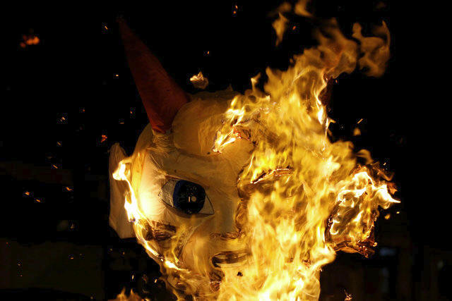 figures, which clutched fistfuls of fake cash, and a U.S. flag.