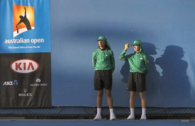 Ball boys are pictured at the Australian Open tennis tournament at