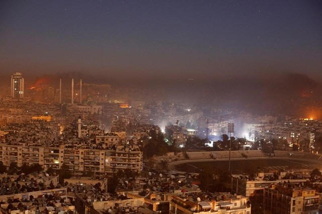 Smoke and flames rise after air strikes on rebel-controlled besieged