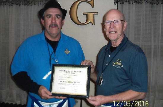 presented by WB Kenneth E. Cook, Worshipful Master