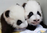 Giant panda twins Ya Lun and Xi Lun