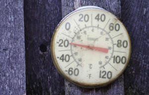 A backyard thermometer shows the temperature during polar vortex in