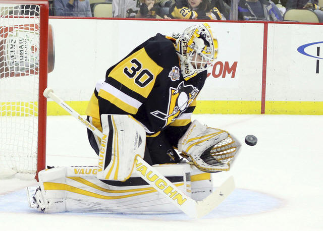 Penguins goalie Matt Murray (30) makes a save against the Arizona