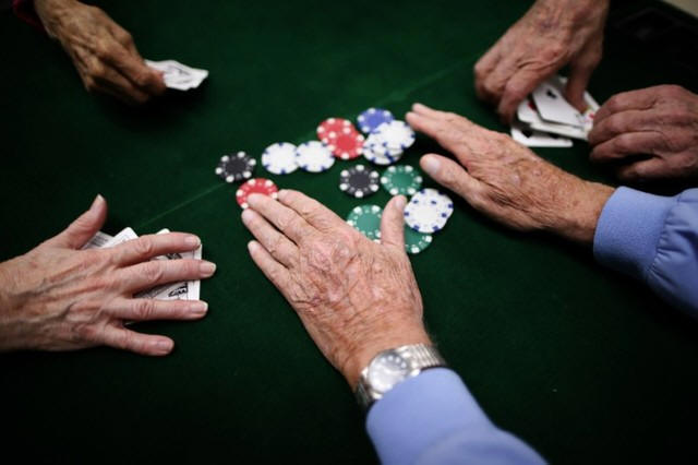 FILE PHOTO - Retirees play poker at a singles club in Sun City,