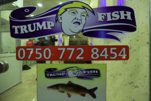 Trump Fish, located between an appliance shop and a laundromat, has not