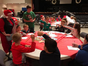 The festivities kicked off Friday night at the Mount Pulaski Christian Church Family Life Center with an event called Polar Express Movie Night. Kids gathered here to play games, eat pizza, write letters to Santa with Mrs. Claus in attendance, make reindeer food and watch the Tom Hanks movie, “The Polar Express.”