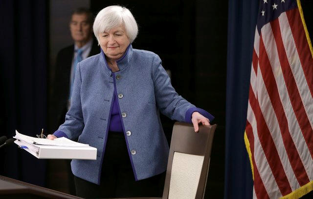 Federal Reserve Chair Janet Yellen arrives to hold a news conference