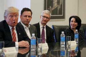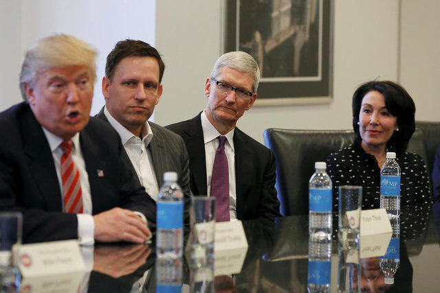 co-founder and Facebook board member Peter Thiel, Apple Inc CEO Tim