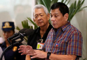 Philippine President Rodrigo Duterte speaks next to Foreign Affairs