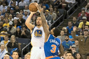 Warriors guard Klay Thompson (11) shoots the basketball against New