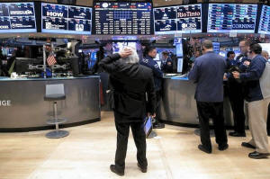 Traders work on the floor of the New York Stock Exchange (NYSE) in New York