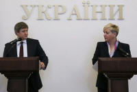 Valeriia Gontareva attend a news conference in Kiev, Ukraine,