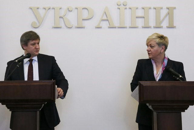 Minister Oleksandr Danylyuk (L) and Central Bank Governor