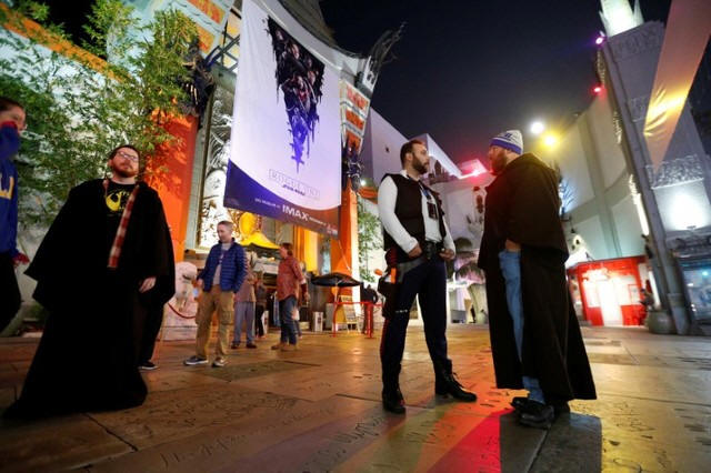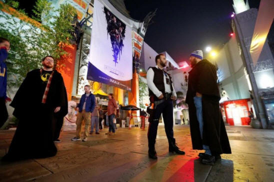 wearing costumes wait for the first showing of