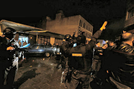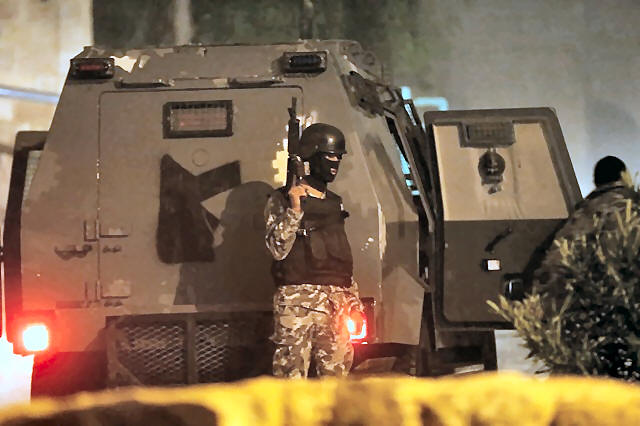 policemen stand guard in the vicinity of Kerak Castle where
