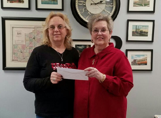 accepts a check from Linda Barrick of the Logan