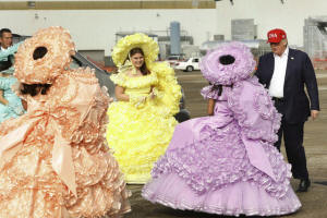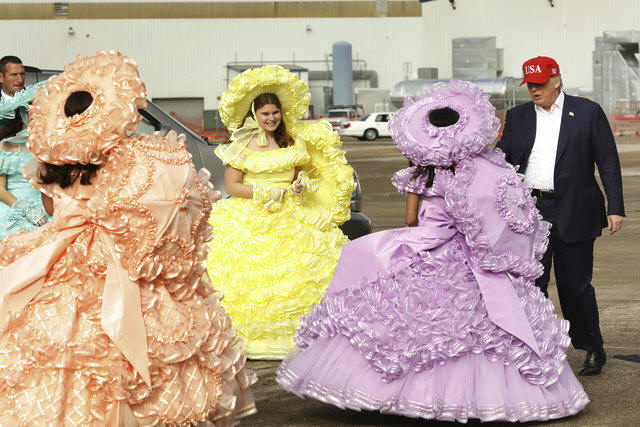 Trump greets a group of gathered Azalea Trail Maids as he arrives