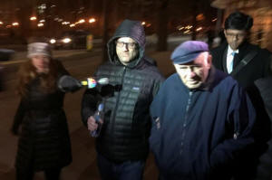 Mark Nordlicht, wearing a hoodie, exits federal court in Brooklyn,
