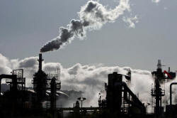 Smoke is released into the sky at a refinery in Wilmington,