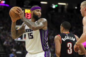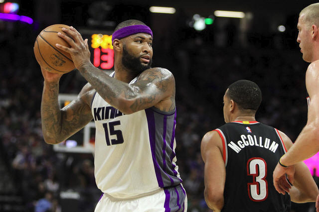 Kings forward DeMarcus Cousins (15) looks to pass against Portland