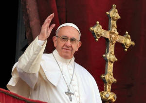 Pope Francis waves after delivering his "Urbi et Orbi" (to the city