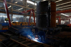 A worker welds in the Tianye Tolian Heavy Industry Co. factory in