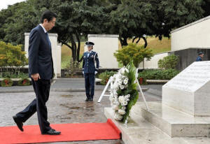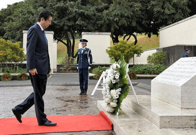 Minister Shinzo Abe on Monday stopped at several memorials in Hawaii,