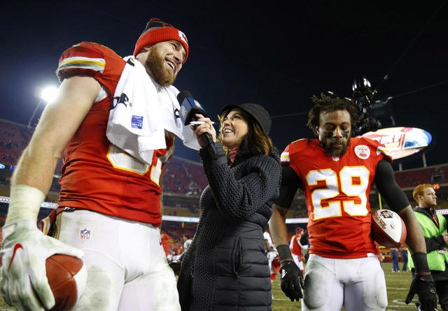 talk with media after the game at Arrowhead Stadium. The Chiefs won