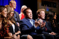Host Arnold Schwarzenegger (C) and