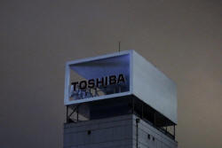 The logo of Toshiba Corp is pictured at its headquarters in Tokyo,