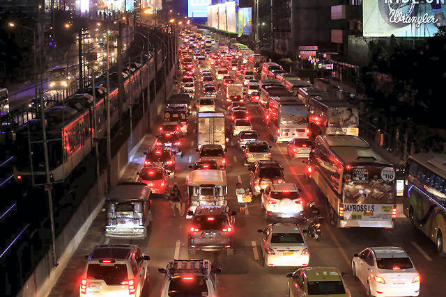 Vehicles are seen during heavy traffic on Epifanio Delo Santos